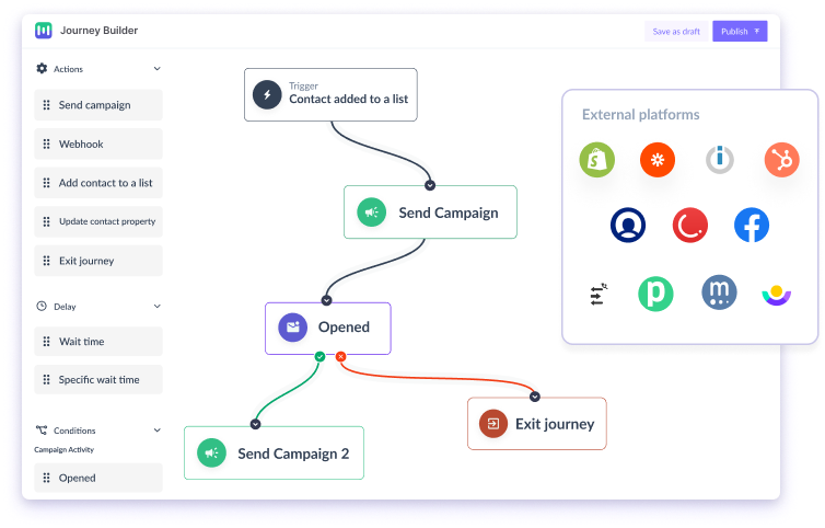 Trigger journeys for customers stored across platforms with connectors, APIs, or native integrations.